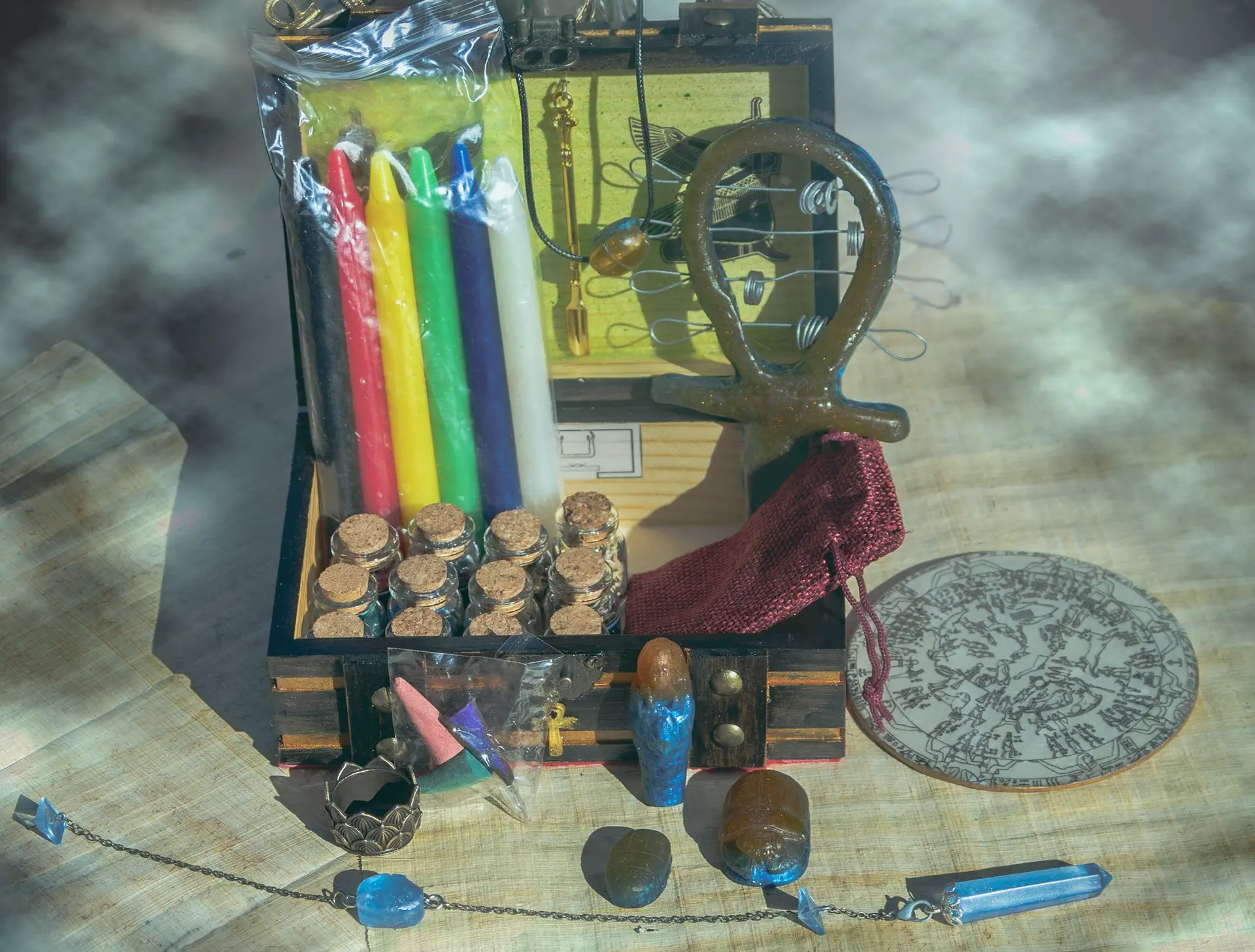 Caja Kit para rituales de magia Kemetica, que incluye:
