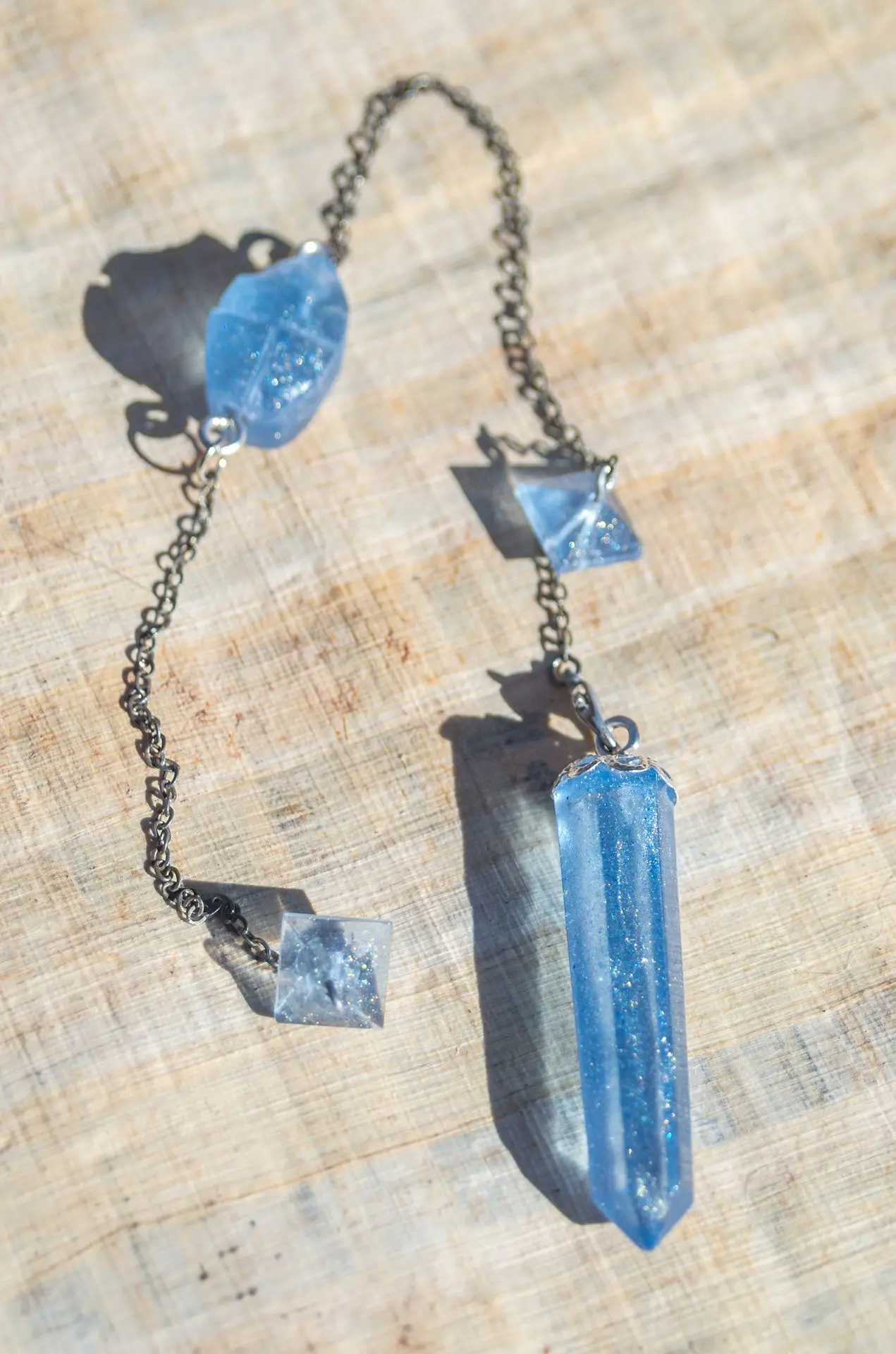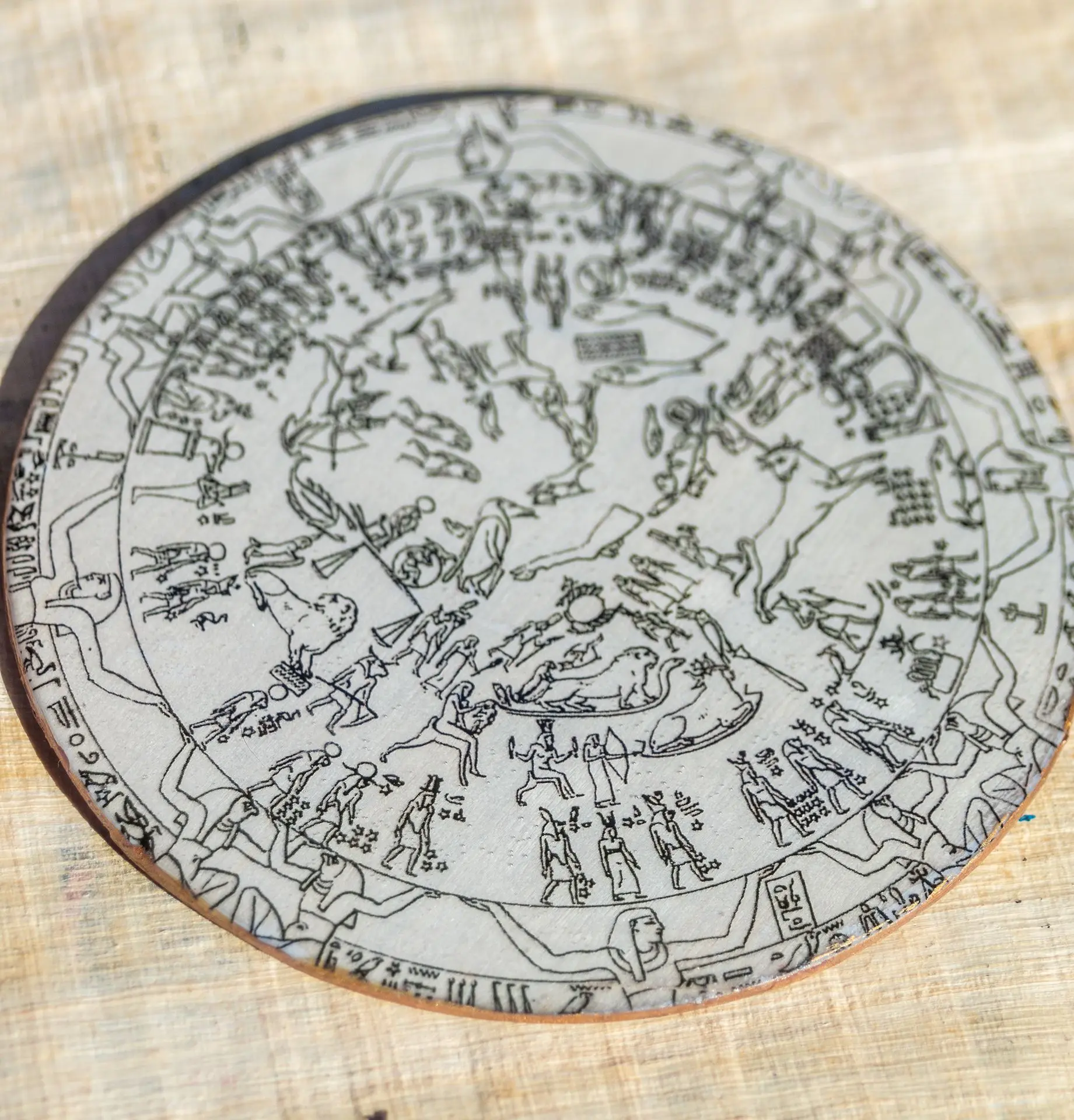 Péndulo en resina con la forma de obelisco, dos pirámides y un escarabajo y tabla de péndulo del zodiaco de Dendera