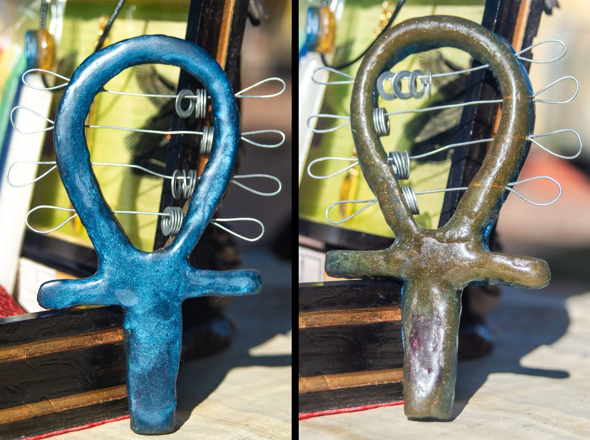 Sistro en resina con forma de Ankh