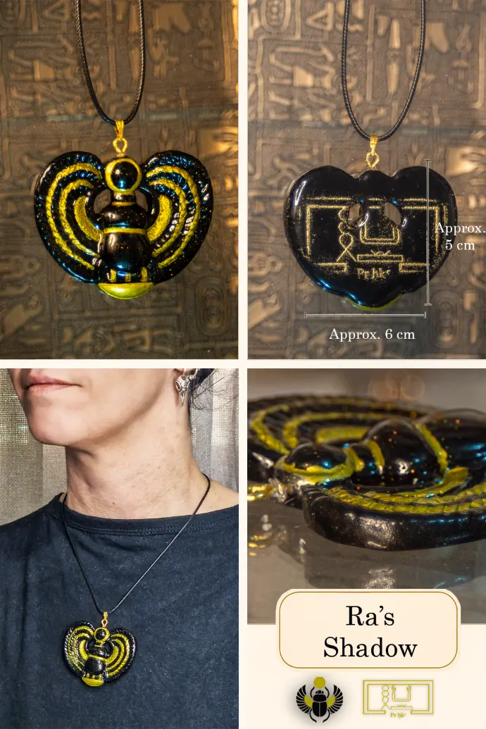 The winged scarab “Shadow of Ra” represents the force that dwells in the darkness and the power of the hidden sun.
