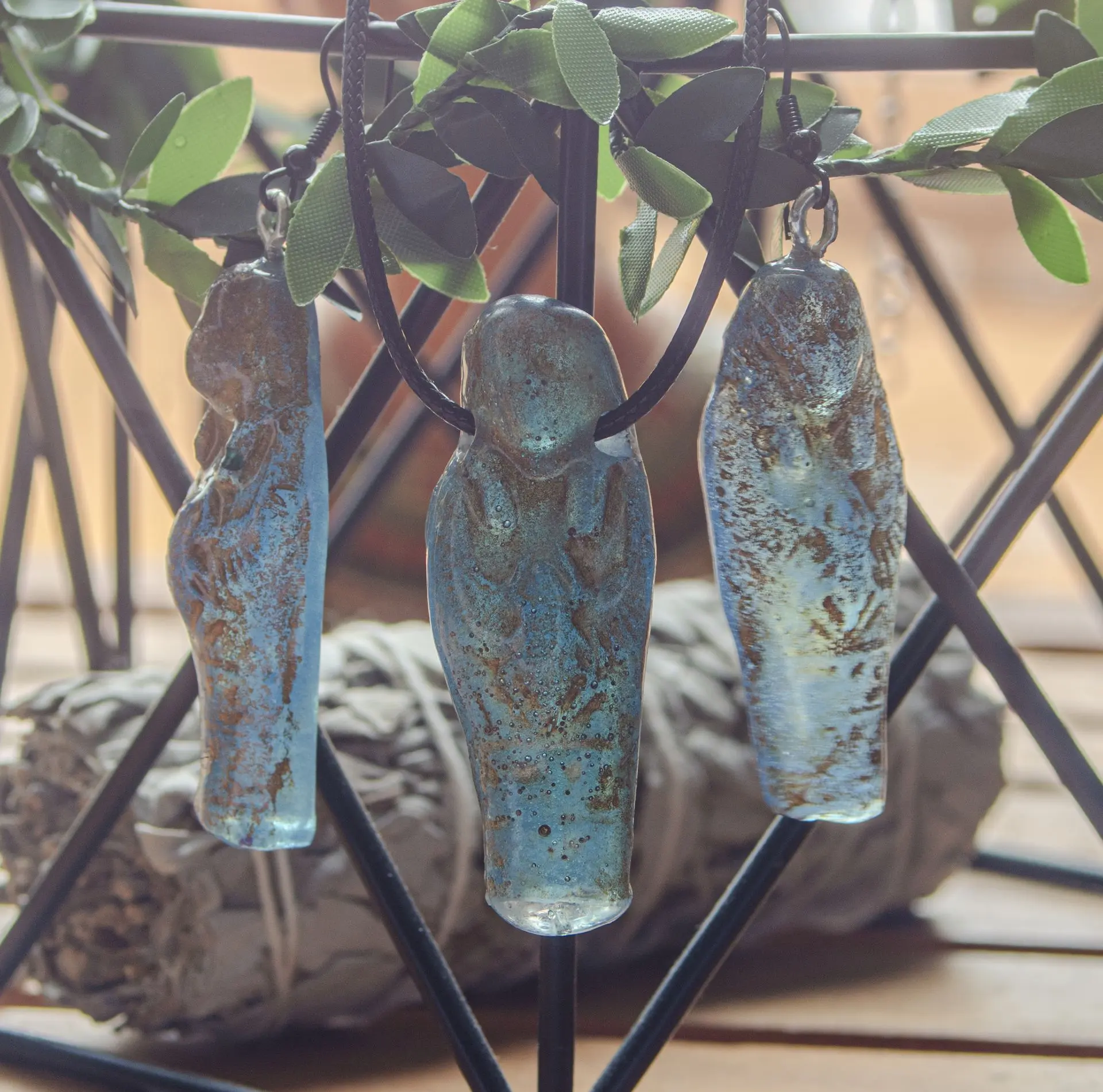 Juego de pendientes y collar de Ushebtis